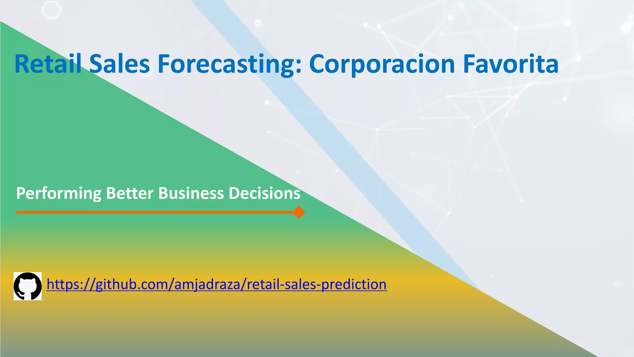 The document outlines the development of a machine learning pipeline for retail sales forecasting at Corporacion Favorita, a major Ecuadorian grocery retailer. It emphasizes the importance of sales forecasting for better business decisions, detailing the model development, feature engineering, and deployment process. Future improvements include enhancing model features, scaling using Spark, and creating a monitoring framework for model consistency.