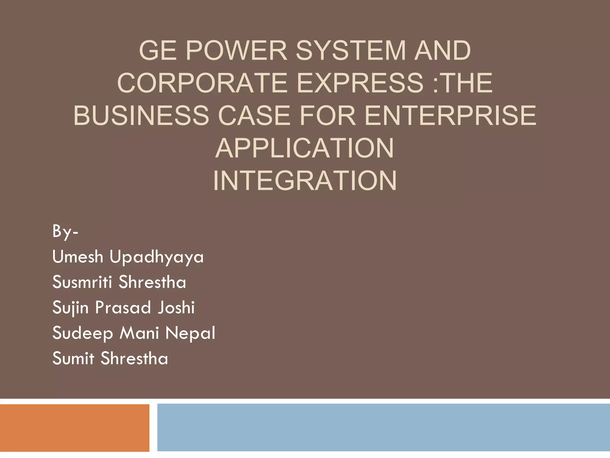 GE Power Systems and Corporate Express implemented enterprise application integration (EAI) projects to improve operations. For GE Power Systems, EAI allowed real-time data sharing between legacy systems and applications, improving data quality and accuracy. For Corporate Express, EAI doubled the number of web-based customer interfaces and cut internal and customer costs by replacing legacy interfaces. Both companies benefited from increased efficiency and reduced costs through better integration of their applications, showing how EAI can deliver business value.