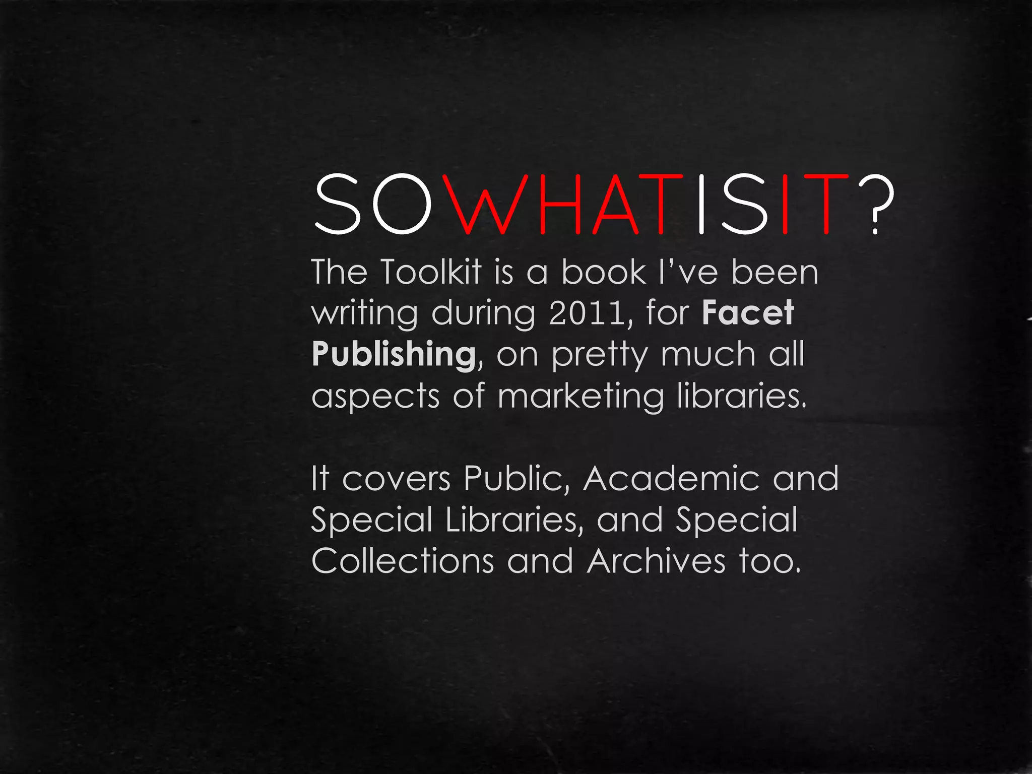 The document provides an overview and preview of "The Library Marketing Toolkit" by Ned Potter. The Toolkit is a book being published in 2011 that covers all aspects of marketing libraries, including public, academic, special, and archive libraries. It includes practical marketing tools and strategies that can be applied to any library on any budget. The book also features over 25 case studies from leading library marketers around the world, providing best practices and expert advice. It aims to inspire libraries to better market and promote themselves through various techniques and channels.