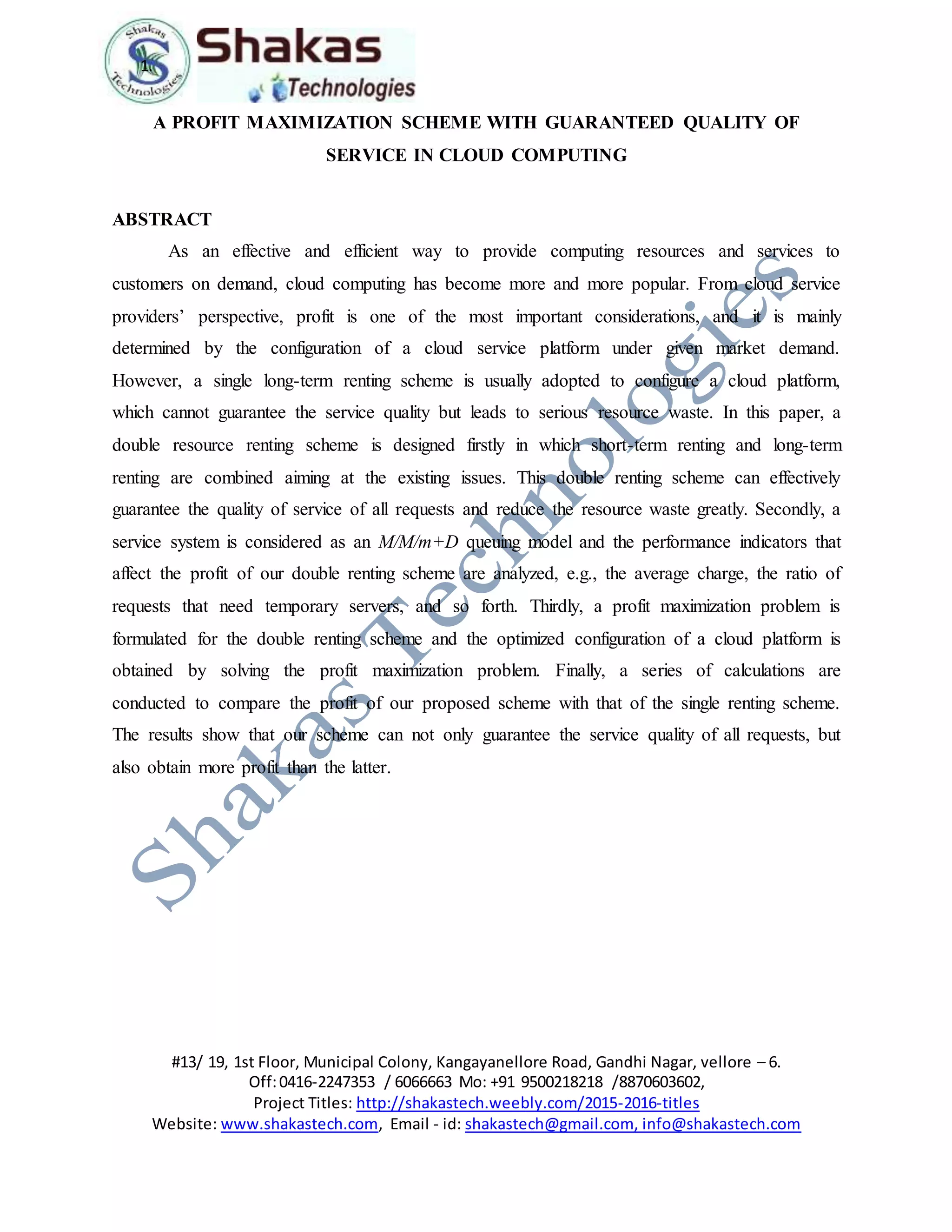 This paper presents a novel double-quality-guaranteed (DQG) resource renting scheme for cloud service providers that combines short-term and long-term renting to enhance service quality while reducing resource waste. It formulates a profit maximization problem within an m/m/m+d queuing model, analyzing various performance indicators and comparing the DQG scheme with a single-quality-unguaranteed (SQU) scheme, demonstrating superior results in both service quality and profit. The proposed model adapts to dynamic demand and lays groundwork for future research into heterogeneous cloud environments.