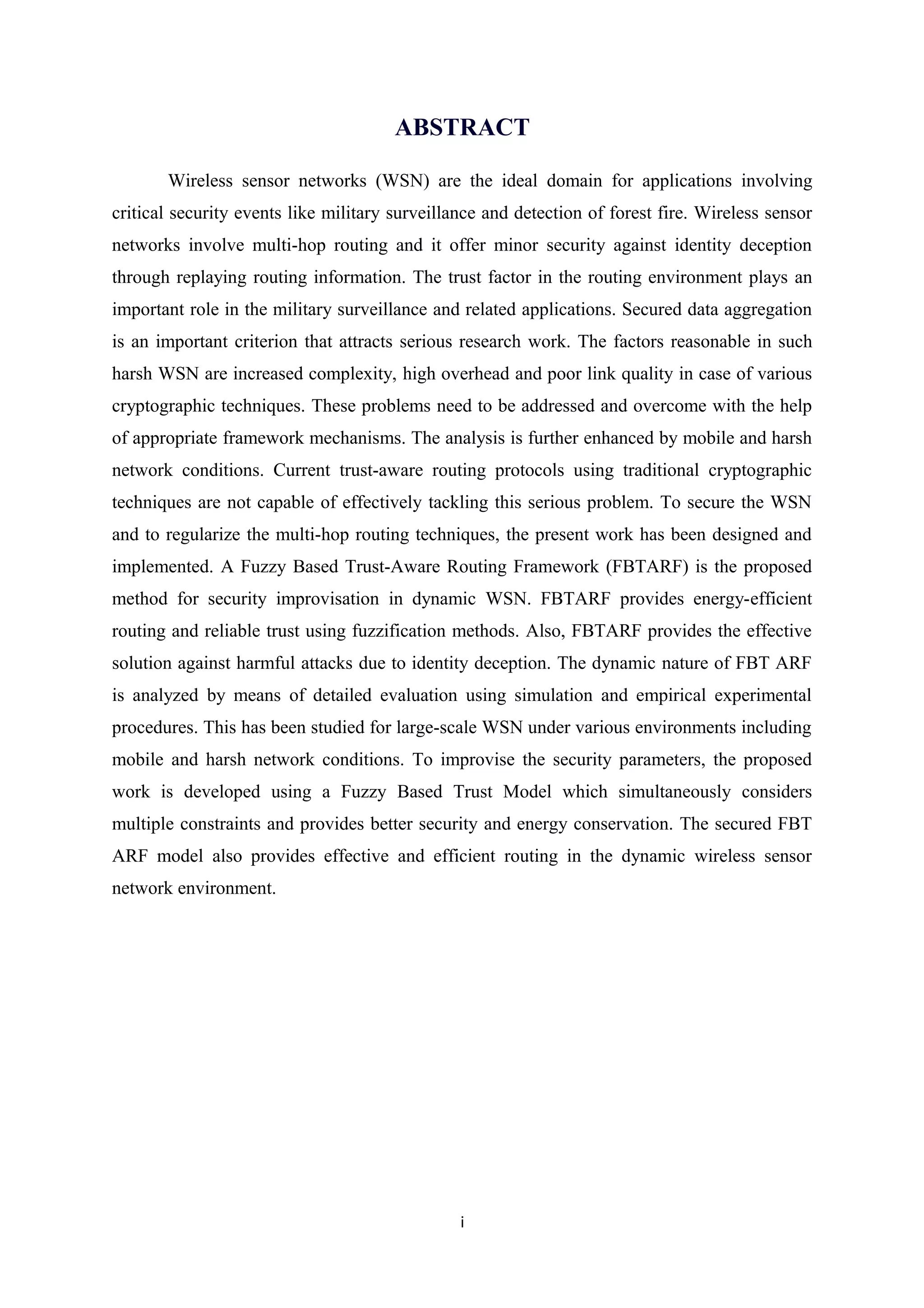 This document proposes a Fuzzy Based Trust-Aware Routing Framework (FBTARF) for wireless sensor networks to improve security and energy efficiency. Wireless sensor networks are used for critical applications like military surveillance but face security issues from identity deception and data replay attacks. Current trust-aware routing protocols using cryptography have limitations in dynamic wireless sensor network environments. The proposed FBTARF framework uses fuzzification methods and a fuzzy-based trust model to provide more secure and energy-efficient routing while addressing the weaknesses of cryptographic techniques for wireless sensor networks, especially in mobile and harsh conditions. It was evaluated through simulation and experiments and shown to improve security parameters over alternative approaches.