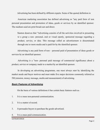 2. The objectives, features, need for measuring effectiveness, and functions of advertising.