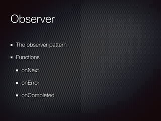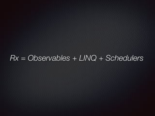 This document provides an introduction to Reactive Extensions (Rx), highlighting its purpose, usage, and various programming languages that support it. It covers the development of Rx, outlines key concepts such as observables and operators, and emphasizes the benefits of adopting this technology in software development. Additionally, it includes code examples for C# and JavaScript, along with resources for further learning.