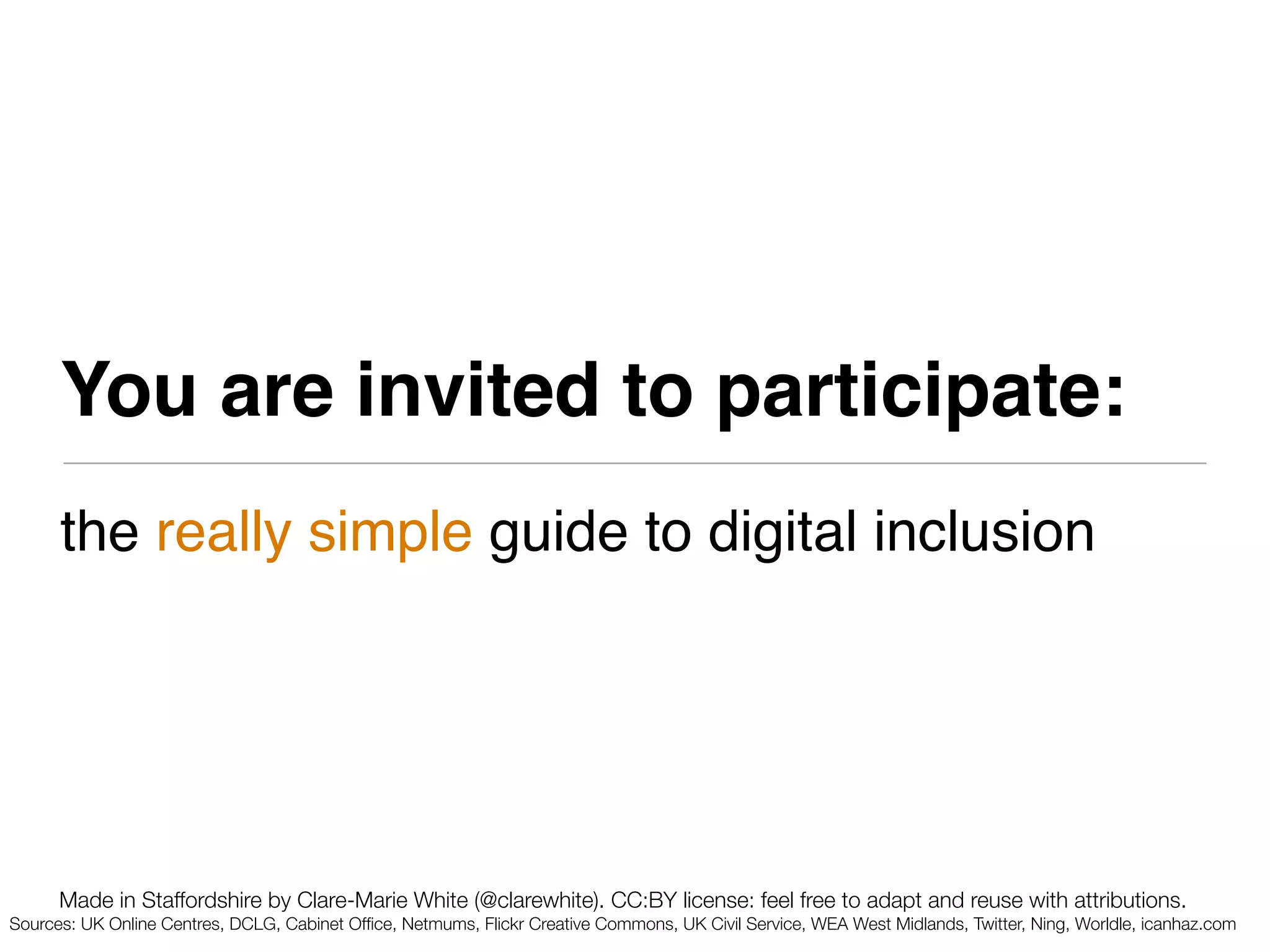 The document discusses a guide to digital inclusion created in Staffordshire, highlighting the importance of technology in improving life chances and addressing social exclusion. It outlines strategies for engaging digitally excluded populations, including the provision of accessible information, open feedback mechanisms, and supporting digital literacy among staff. Furthermore, it presents guidelines for online participation, emphasizing professionalism and responsibility when representing an organization.