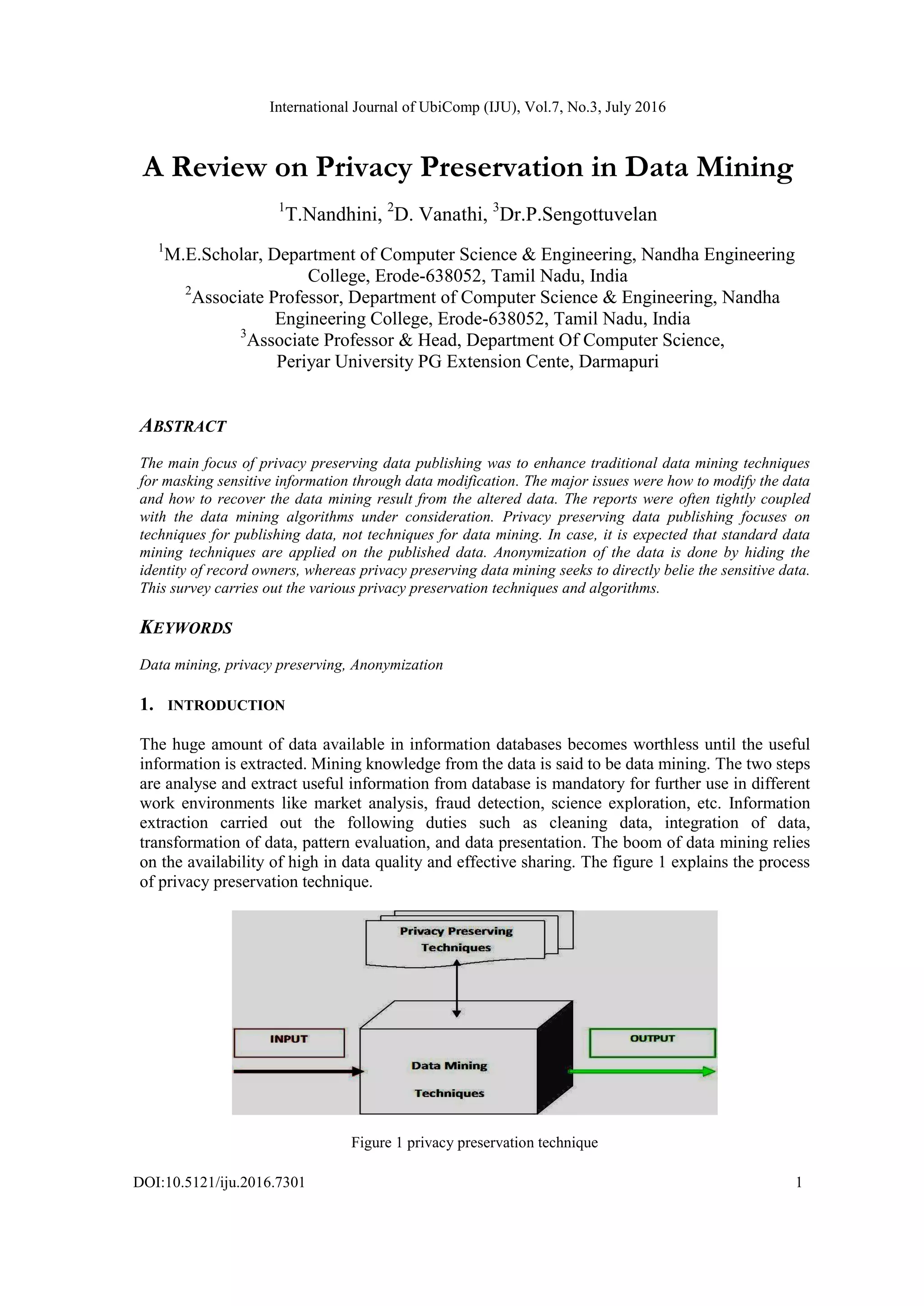 The document provides a comprehensive review of privacy preservation techniques in data mining, emphasizing the need to mask sensitive information while allowing for effective data publishing. Key approaches include data perturbation, cryptographic tools, and various anonymization algorithms to safeguard user identities and data integrity, particularly in social networks. The survey evaluates different methods and algorithms, noting advancements and challenges in achieving privacy while maintaining data utility.