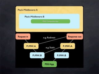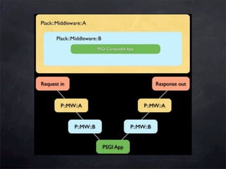This document discusses the evolution of web development in Perl, from CGI scripts to modern PSGI-based frameworks. It introduces PSGI as an interface between web applications and web servers, and Plack as a toolkit for building PSGI applications and middleware. The document outlines many PSGI web servers and frameworks that can be used to build and deploy Perl web applications according to the PSGI standard.