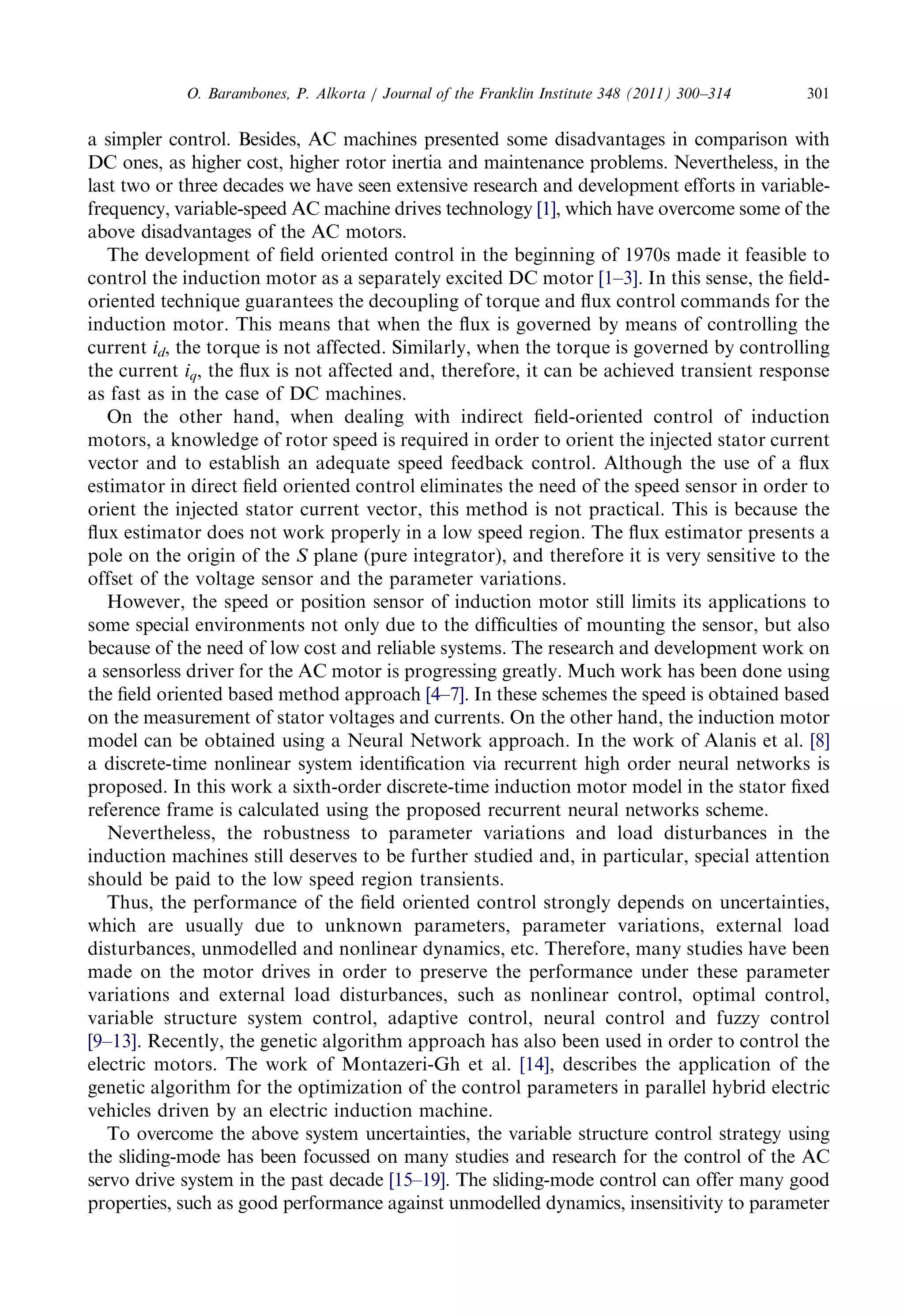 This document presents a novel adaptive sliding-mode control system to control the speed of an induction motor drive. The control system uses vector (field-oriented) control theory for induction motor drives and incorporates an adaptive sliding-mode control law. This adaptive law calculates the sliding gain online without needing to determine an upper bound on system uncertainties. Simulation results show the proposed controller provides high performance, is robust to parameter variations and external load disturbances, and reduces chattering compared to traditional sliding-mode controllers.