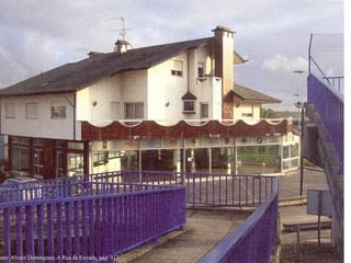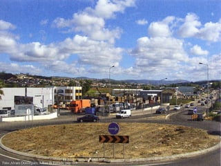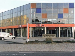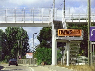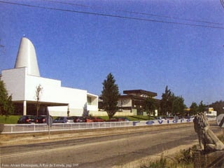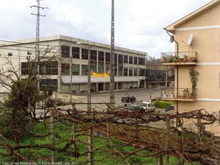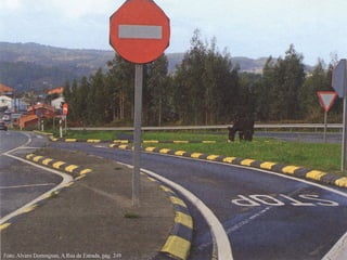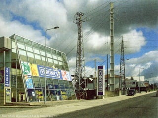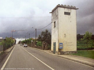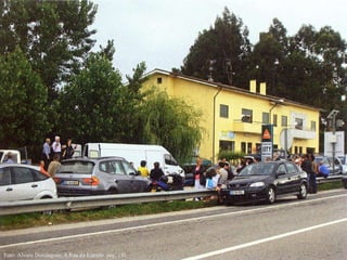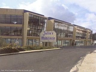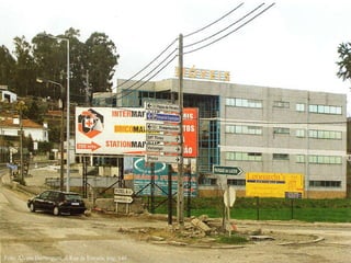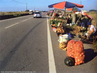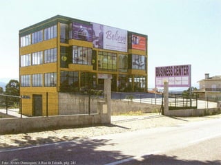 O documento descreve a rua da estrada como um espaço transgênico que assimila elementos urbanos e rurais, tornando-se um sistema de vários centros ao invés de um centro único. Também discute como as casas ao longo da estrada são constantemente modificadas para se adaptar às necessidades dos moradores e como os edifícios servem como vitrines para atrair motoristas.