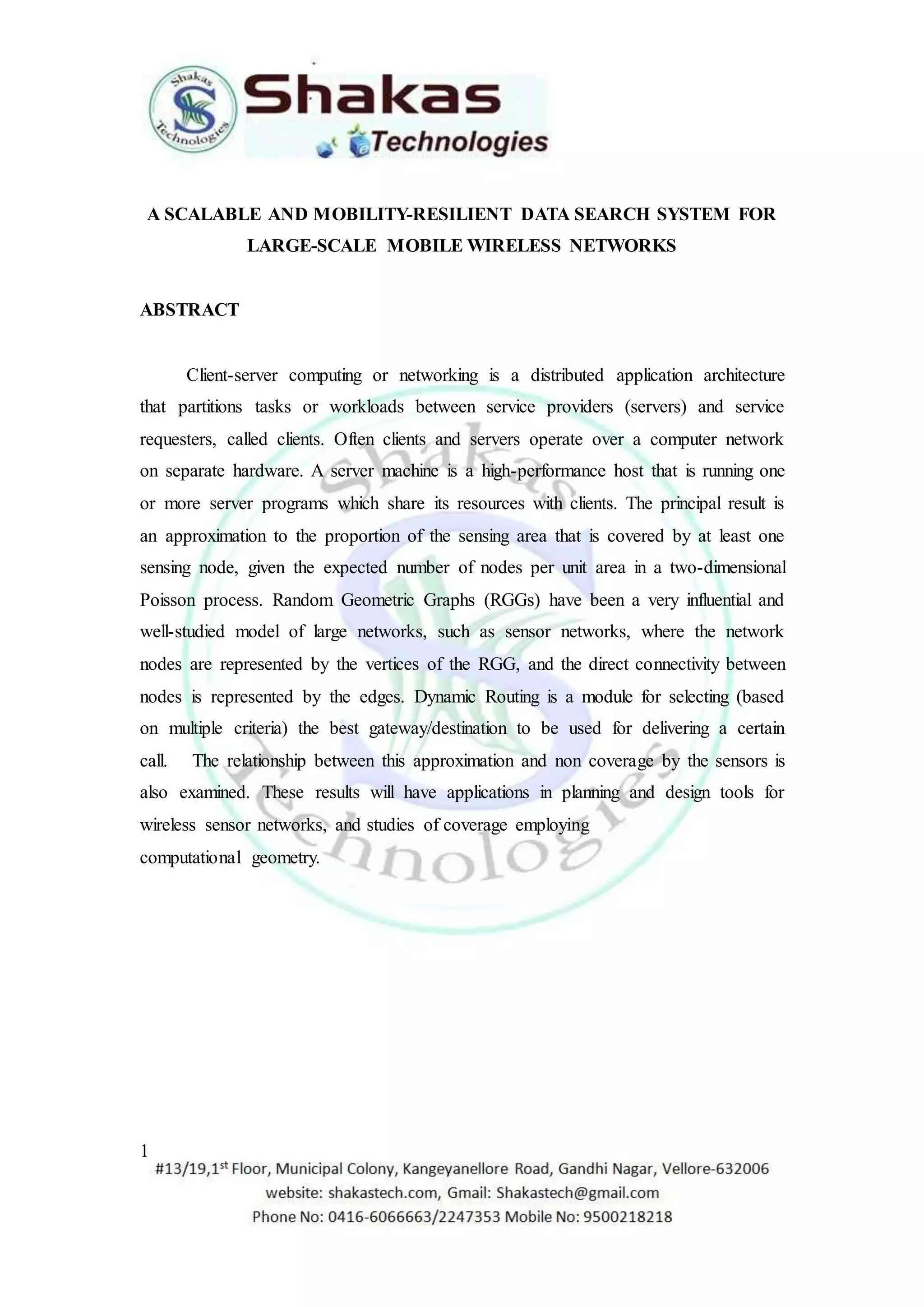 The document outlines a scalable data search system designed for large-scale mobile wireless networks utilizing client-server architecture. It discusses the approximation of coverage in sensor networks, dynamic routing for efficient communication, and system requirements for implementation. The findings aim to enhance planning and design tools for wireless sensor networks through computational geometry approaches.