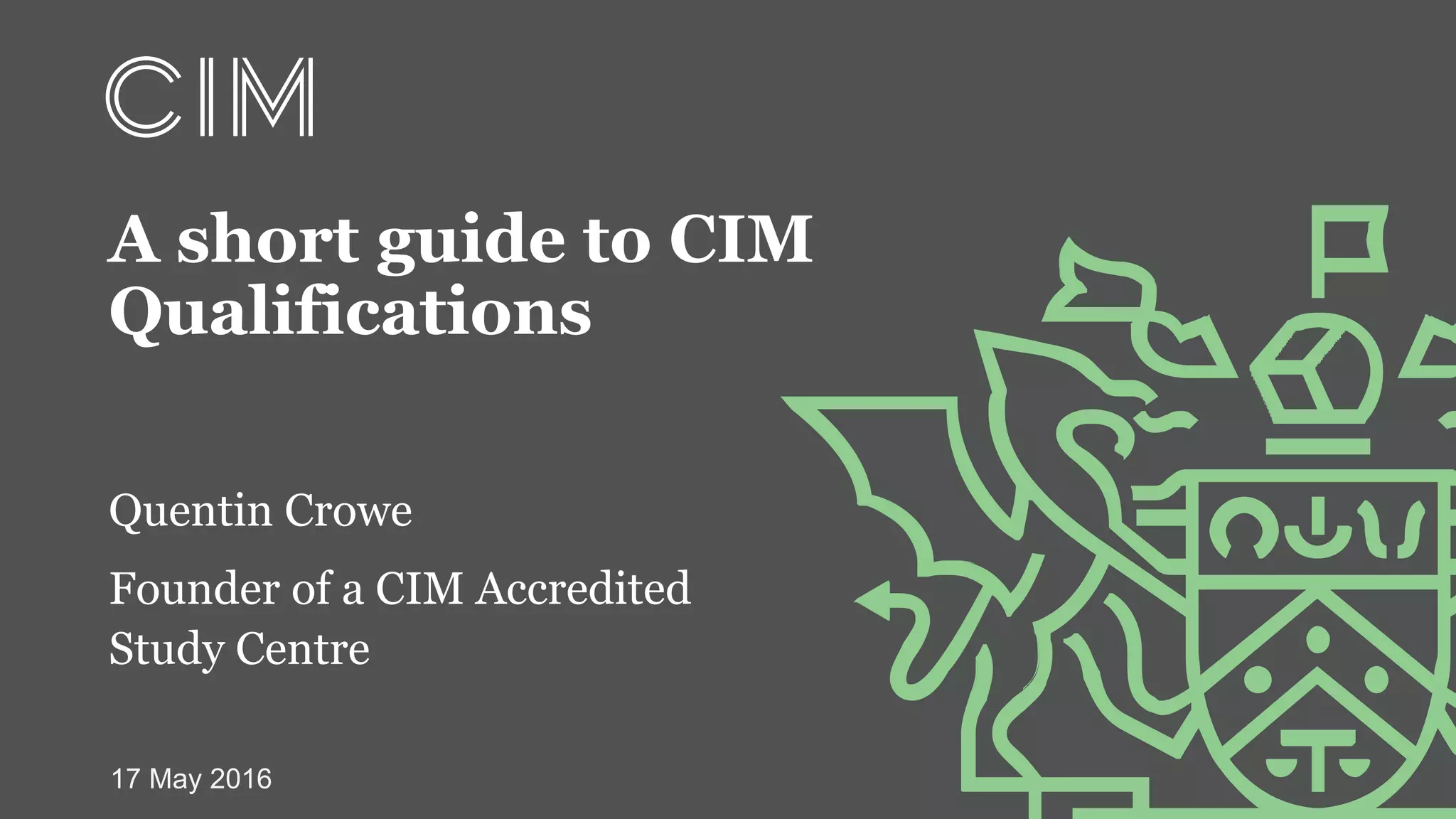 The document provides an overview of CIM qualifications, detailing various programs such as the Foundation Certificate, Professional Certificate, and Diploma in Professional Marketing. It outlines the benefits of CIM membership, the suitability for different professionals, and the delivery and assessment methods for the qualifications. Additionally, it addresses FAQs and next steps for prospective students interested in marketing education.
