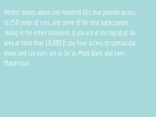 Here, Amanda Starbuck offers a brief, yet useful, guide to one of the top skiing destinations in the world, Verbier