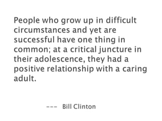Mentoring involves a developmental relationship where an experienced person provides guidance and support to help a mentee achieve personal and career goals. The relationship is based on trust and involves coaching, counseling, sharing knowledge, and providing emotional support. An effective mentor acts as a role model, facilitates the mentee's growth, and helps the mentee develop new skills and perspectives over the long term through both directive and non-directive influence. Key responsibilities of mentors include listening without judgment, asking questions to help mentees learn, and supporting mentees as they work to find their own solutions.