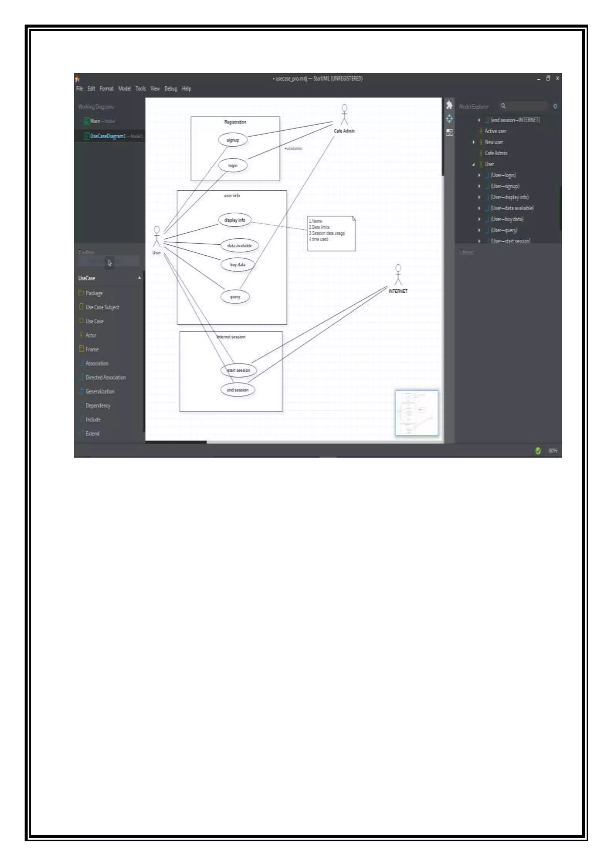 The document details a software engineering project on a Cyber Cafe Management System developed by S.V. Rohith and N. Anirudh, guided by Dr. B. Vijay Babu, as part of their B.Tech degree requirements. It outlines the project's structure, including modules for user management, billing, and system connectivity, highlighting the use of UML diagrams for design. Additionally, it discusses the project's advantages and future scope, including automation and enhancement of security measures such as fingerprint authentication.