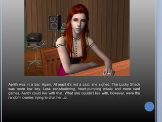 Aerith is at a bar trying to avoid being hit on by men. She sees a mysterious man at the poker table who she has seen before. She becomes angry and confronts a man who follows her outside, biting him and drinking his blood. Shocked by her actions, she runs away.