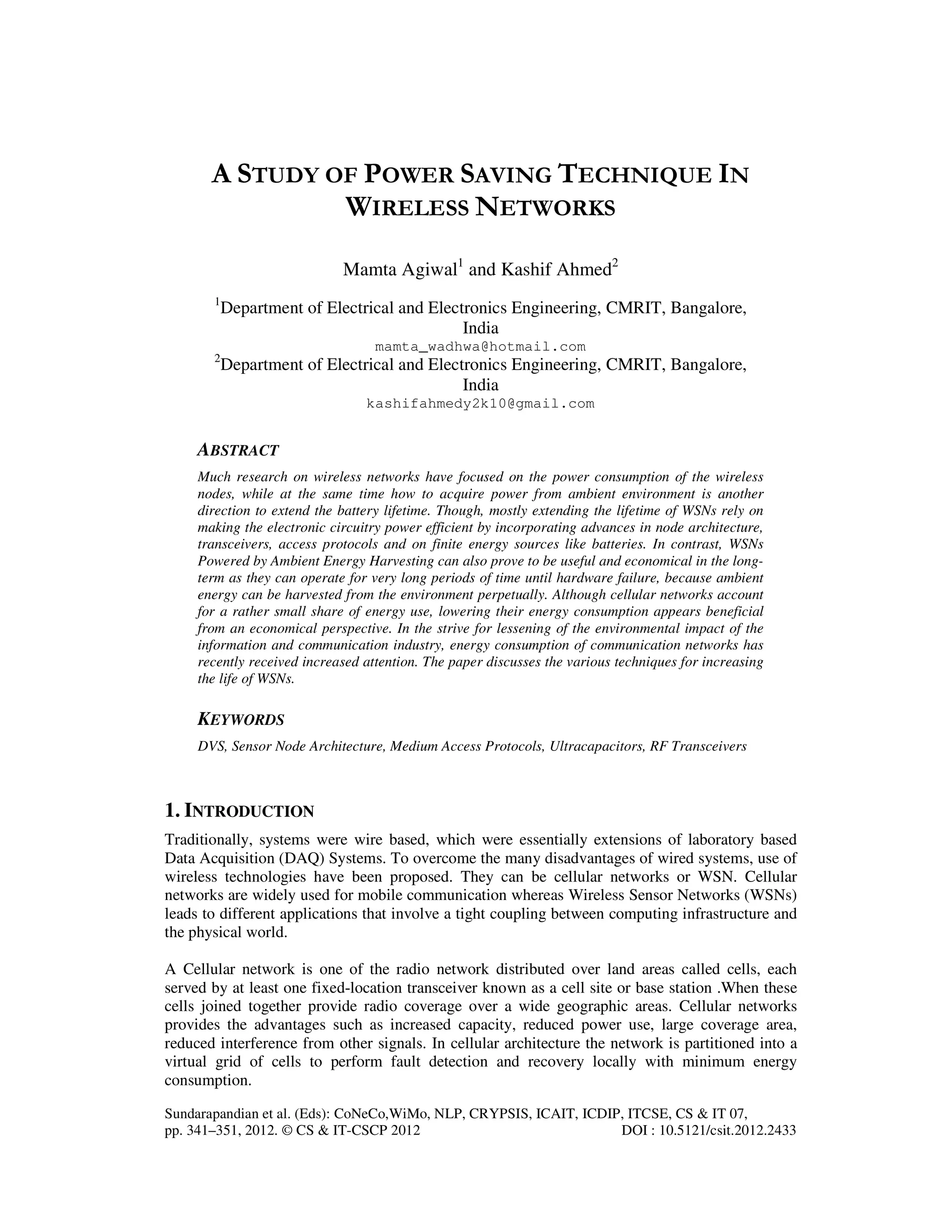 This document discusses various power saving techniques in wireless networks. It begins by describing the typical workload profile of a wireless sensor network and discusses an energy efficient heterogeneous multiprocessor sensor node architecture that uses low-power and high-power processors depending on the workload. It also discusses dynamic voltage scaling and ultra-low power medium access control protocols for both wireless sensor networks and cellular networks. Finally, it discusses improvements to power amplifiers in base stations and RF transceivers for wireless sensor nodes to reduce power consumption.
