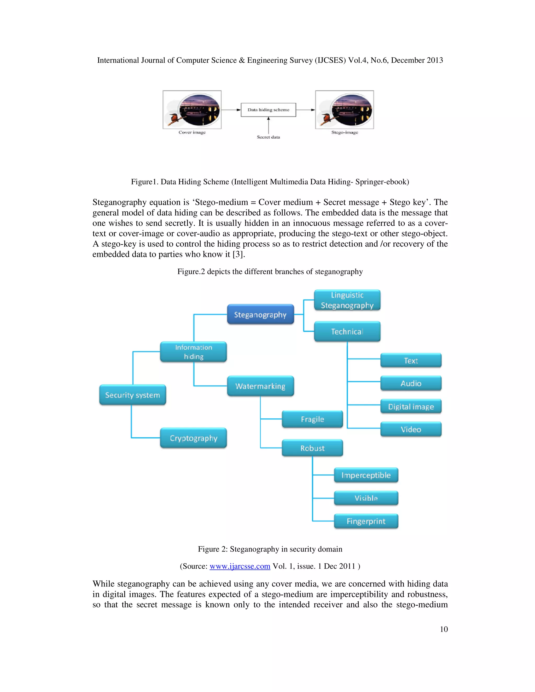 This paper reviews various steganographic techniques for information hiding, emphasizing their applications in securing sensitive information shared over the internet. It classifies steganographic methods into categories such as pure, secret key, and public key steganography, and highlights multiple techniques including substitution, transform domain, and statistical methods. The goal of steganography is to embed secret data within a cover medium so discreetly that only intended recipients are aware of its existence.