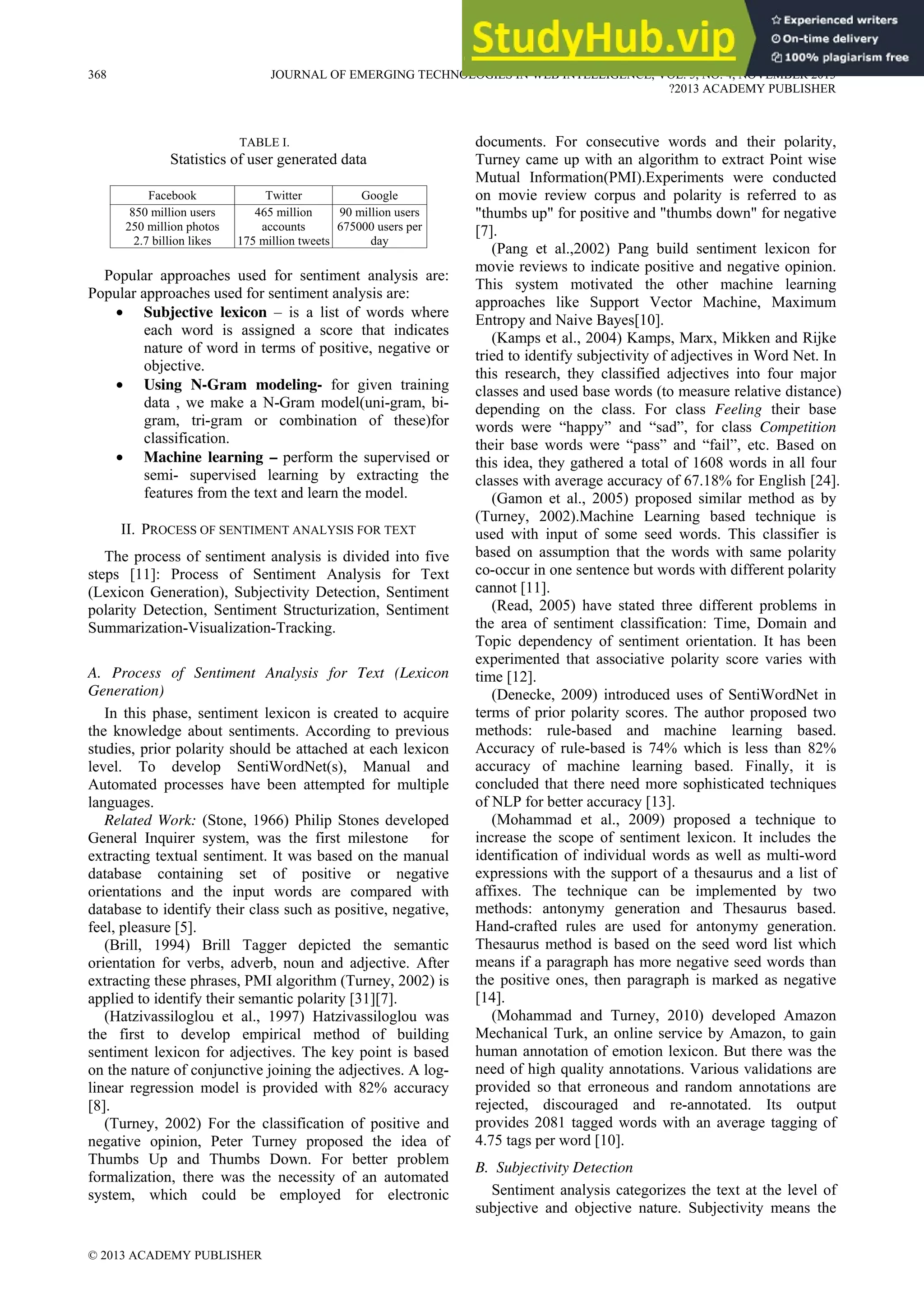 This document summarizes approaches for sentiment analysis and opinion mining techniques. It discusses how sentiment analysis can be used to analyze opinions expressed in text about products, services, and other topics. Popular approaches for sentiment analysis include using subjectivity lexicons, n-gram modeling, and machine learning techniques. The document also describes the common steps involved in the sentiment analysis process, including lexicon generation, subjectivity detection, sentiment polarity detection, and sentiment summarization.