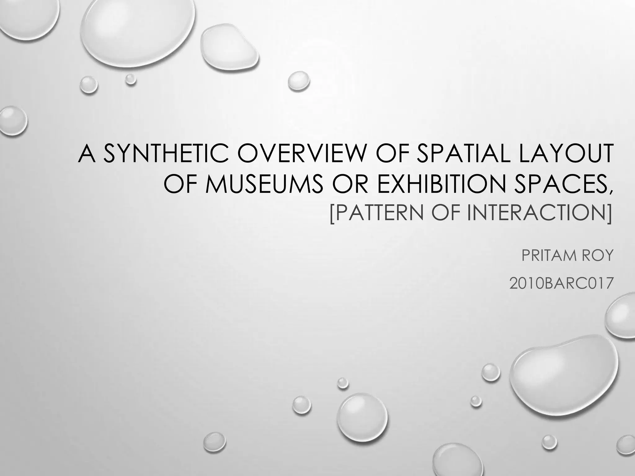 This document presents a study on the spatial layout of museums, focusing on how exhibit space design affects visitor interaction and narrative delivery. It compares two specific museums in Bhopal, analyzing display strategies and their impact on visitor experience through spatial organization. The findings suggest that the synthesis of spatial and display layout enhances the informational and aesthetic qualities of museum experiences.