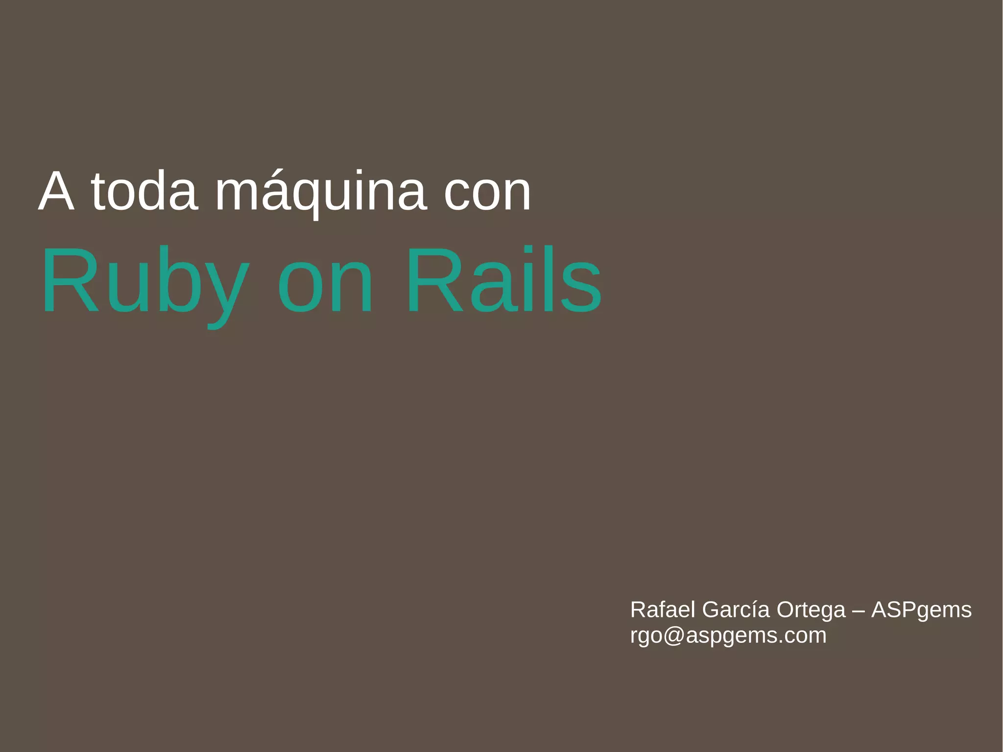 Ruby is a dynamic, multi-paradigm programming language that is easy to read and write. It was influenced by Perl, Smalltalk, Lisp, C and other languages. Ruby on Rails is a web application framework built on Ruby that follows conventions over configurations and the MVC pattern. Rails emphasizes code reuse, easy maintenance, and rapid development of database-backed web applications.