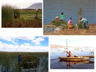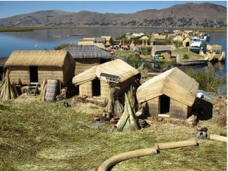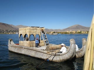 Os Uros constrúenvivendas sobre o lago Titicaca e barcas e