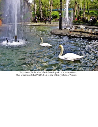 In May, the author's class took a field trip to Seğmenler Botanic Park in central Ankara, which is close to their school and accessible by a 10 minute bus ride. At the park, located in the city center yet filled with oxygen-rich plants, trees and flowers, the students had lunch from home, sang songs, danced, and enjoyed spending time in the lovely natural surroundings on a beautiful day. The summary locates the botanic park in relation to the landmark tower called ATAKULE in the city center of Ankara.