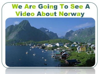 The document provides information about Norway, including its capital city of Oslo, currency of the Norwegian krone, and population of 4.9 million people. It discusses Norwegian cuisine such as traditional breakfast consisting of open sandwiches, meat, spreads and coffee or tea. Popular desserts include strawberries, blueberries, apples and a traditional honey cake made of raisins, honey and grated orange. The document contains a quiz to test comprehension.