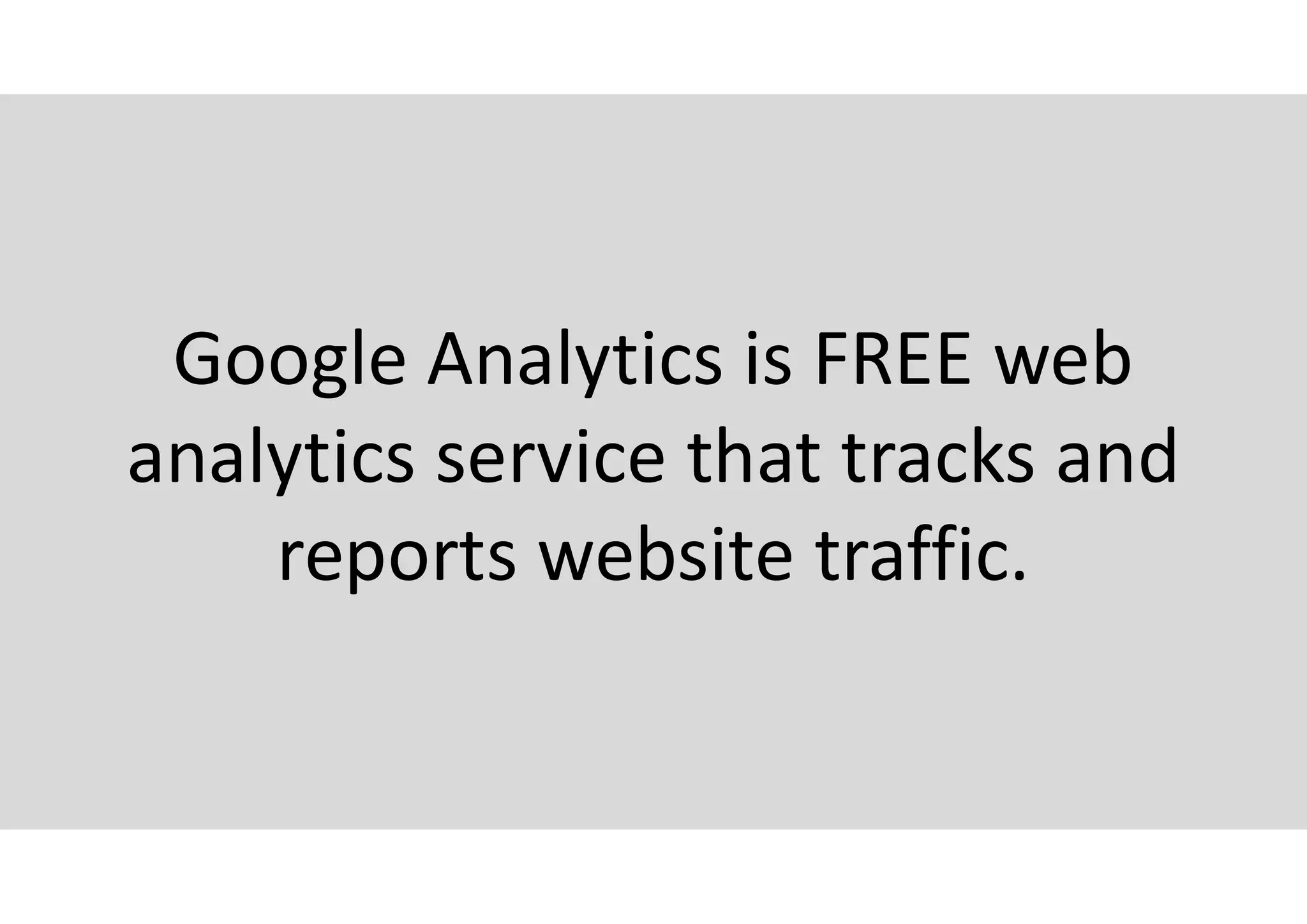 This document provides a step-by-step tutorial on how to set up and use Google Analytics to track website traffic. It covers the process from signing up and configuring a new account to understanding key metrics and reports, including audience overview and acquisition channels. The document emphasizes the importance of properly embedding tracking codes and offers insights on how to leverage analytics data for business improvement.
