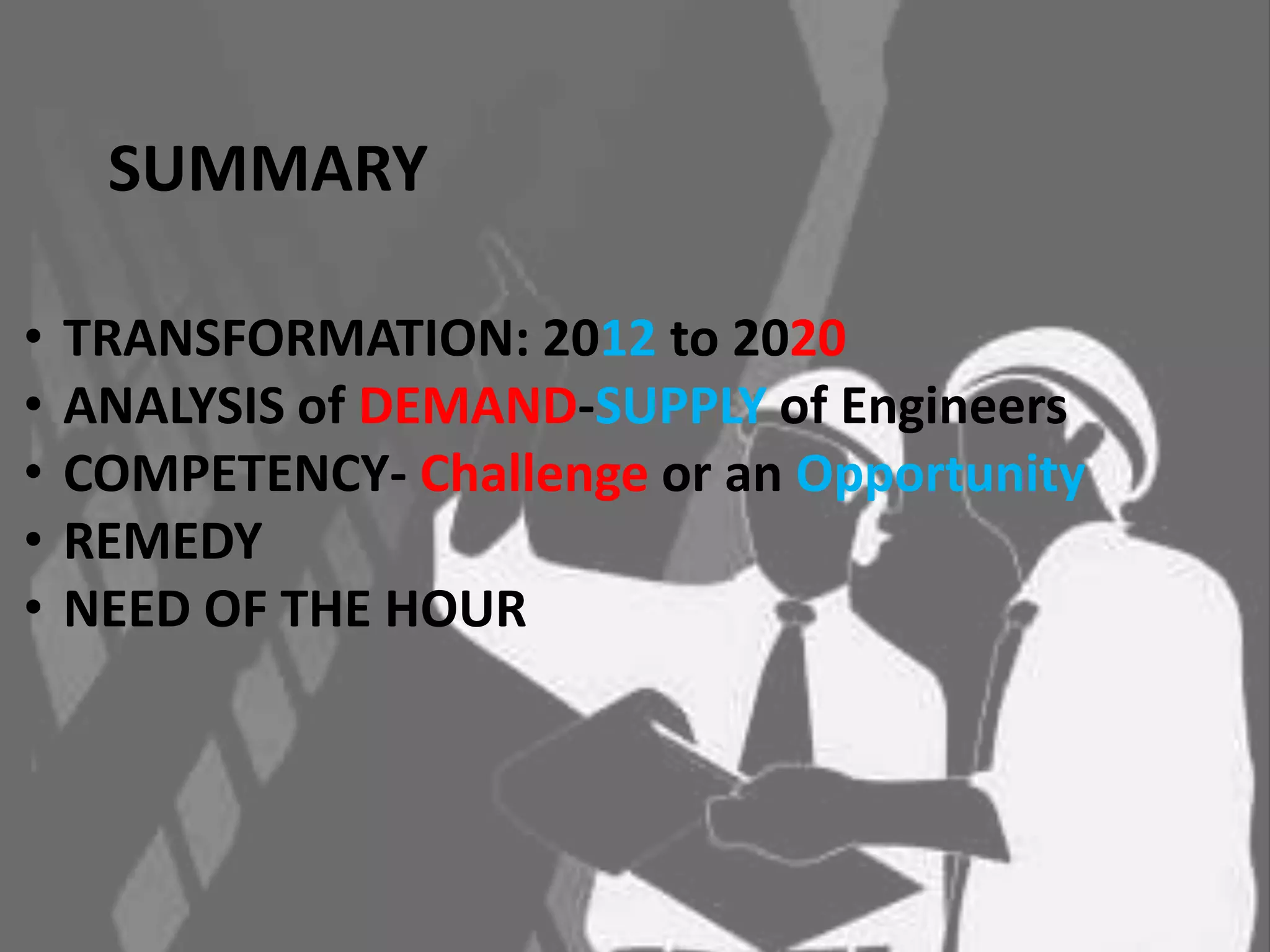 This document discusses the future of civil engineering in India from 2012 to 2020. It analyzes population growth trends and projections that India will become the most populated country by 2030. It also examines India's strong economic growth rate and projections that two-thirds of growth will be spent on developing physical infrastructure. The document then analyzes the demand and supply gap for core civil engineering professionals between 2010-2020, finding a large shortage. It discusses issues like skill gaps in the domestic workforce and inability to complete projects on time. Finally, it proposes remedies like industry-academia collaboration to improve competency and create motivated professionals through workshops, seminars and projects to meet the needs and opportunities in civil engineering by 2020.