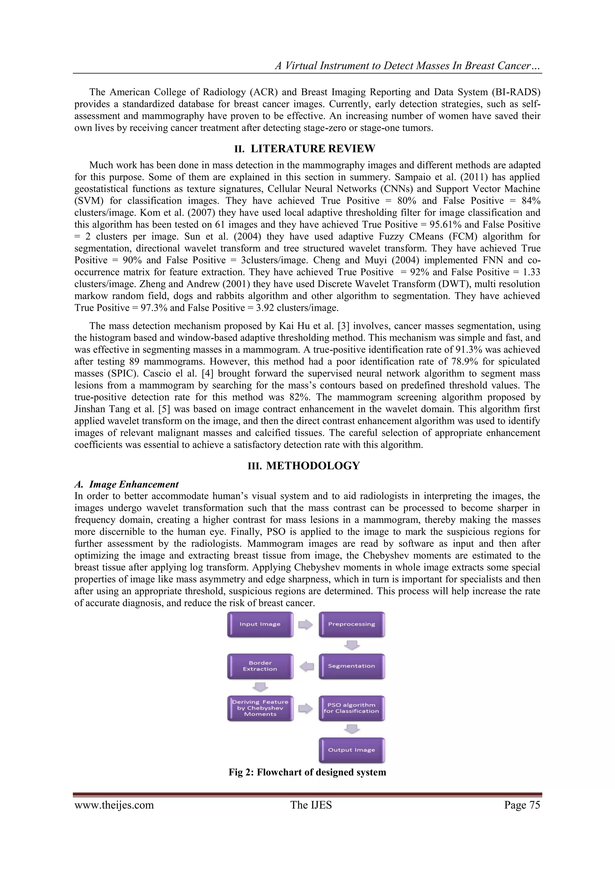 This paper introduces a computer-aided detection (CAD) tool designed to enhance mammography images for effective breast cancer mass identification and classification, using techniques like wavelet transformation and particle swarm optimization. Experimental results demonstrate the method's effectiveness, achieving a detection rate of 94.44% with 100% sensitivity and only 2.56 false positives per image. The proposed system aims to improve early detection and management of breast cancer, which is critical for treatment success.