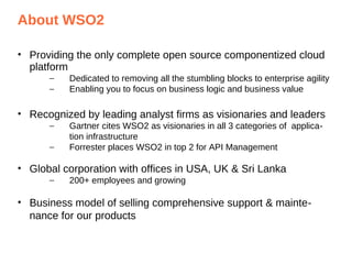 This document provides an overview of single sign-on (SSO) and discusses some common open standards used for SSO, including OpenID, SAML, Kerberos, WS-Trust, and WS-Federation. It outlines some of the key problems with traditional authentication methods, how SSO solves these problems, and the need for open standards. The next webinar will provide more details on specific SSO technologies and demonstrate their use with the WSO2 Identity Server to solve identity and access management challenges.