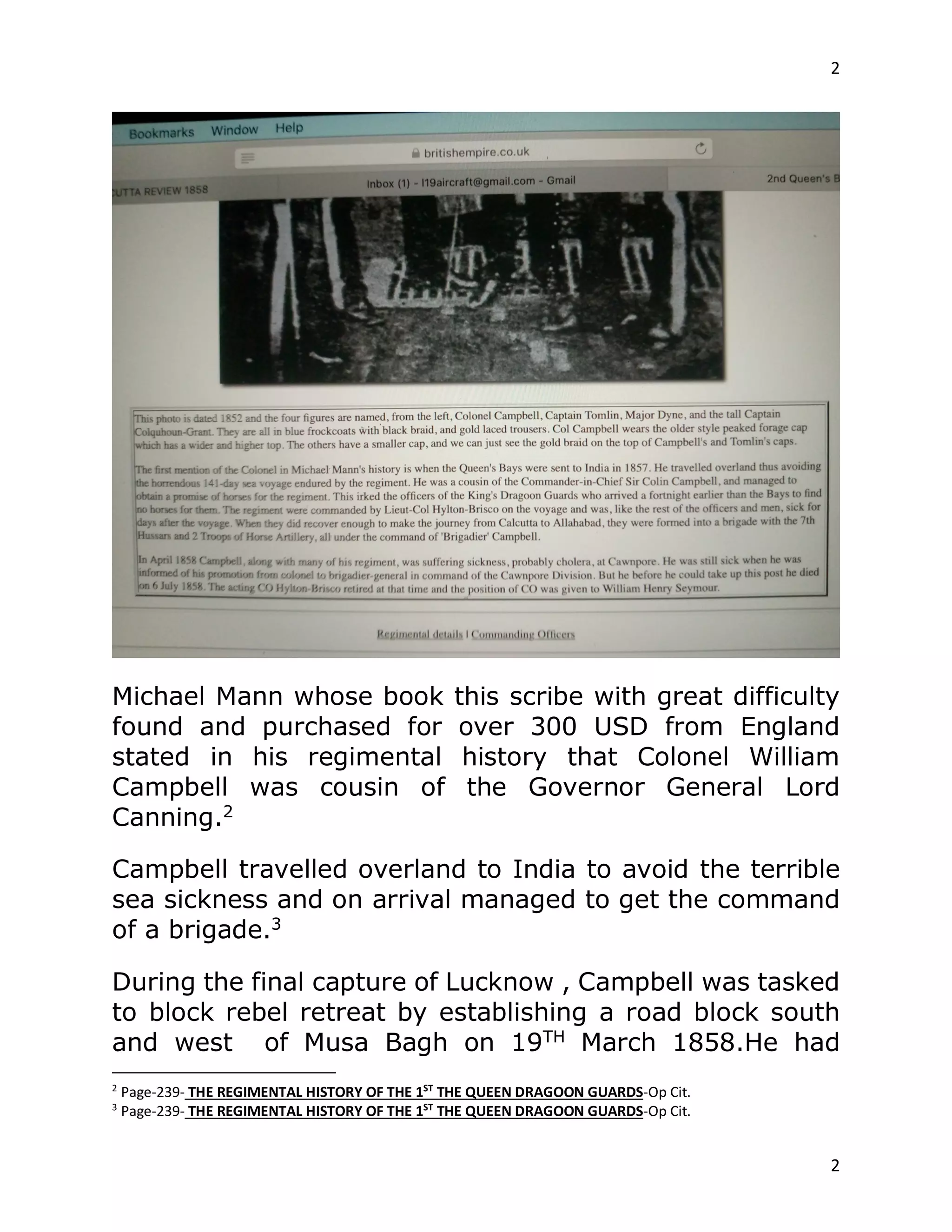 Colonel William Campbell, a well-connected officer during the 1857-59 war, faced significant criticism for his failure to intercept retreating rebels at Musa Bagh but was still praised and promoted, which has puzzled historians. Despite his incompetence, he was rewarded with a promotion to divisional commander, only to die of cholera shortly thereafter. His connections to influential figures such as Sir Colin Campbell and Lord Canning may have played a role in his unexpected acclaim and advancement.