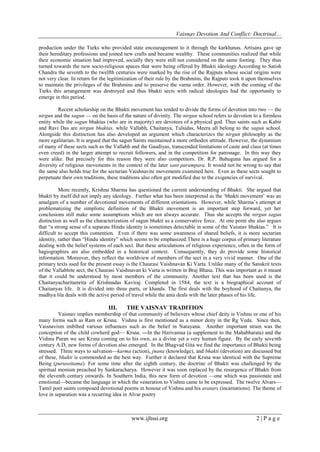 This paper examines the doctrinal differences between two Vaisnavite sects, the Gaudiyas and the Vallabhites, highlighting the complexities and conflicts within the Bhakti movement of medieval India. It discusses how these sects, despite worshipping Krishna, competed for devotees and political patronage, leading to intense rivalries. The study emphasizes the rich diversity of beliefs and practices in the Bhakti movement, challenging the notion of a monolithic religious identity.