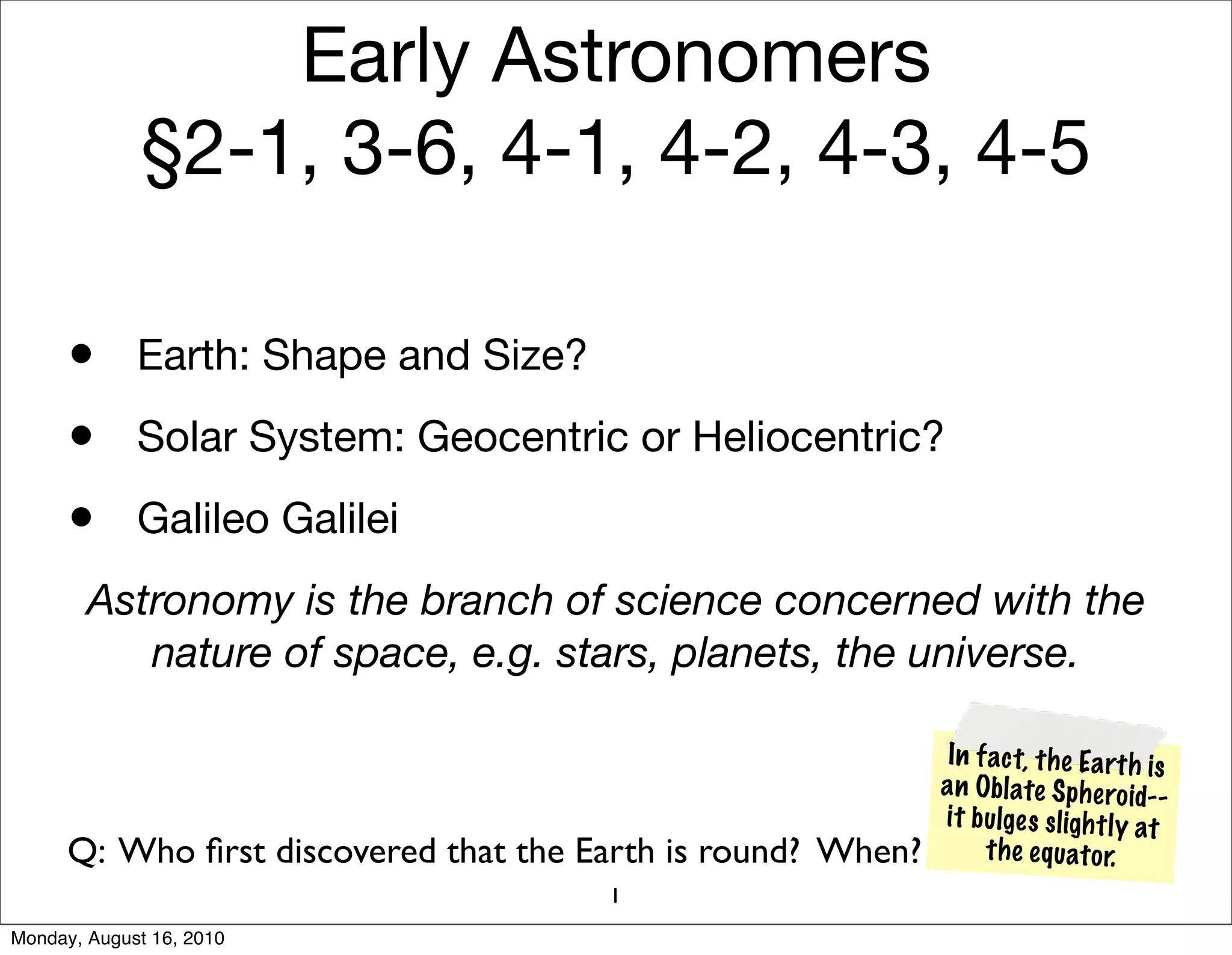 Early astronomers discovered and described key facts about the shape and size of the Earth and the structure of the solar system: