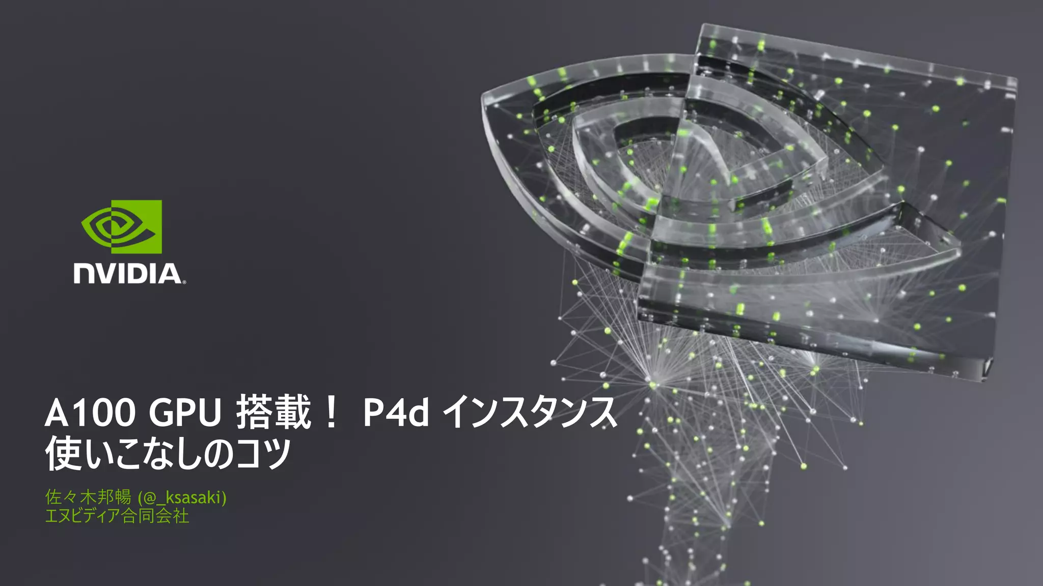 佐々木邦暢 (@_ksasaki) エヌビディア合同会社 A100 GPU搭載! P4d インスタンス 使いこなしのコツ
