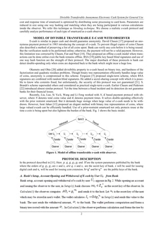 The document presents a novel divisible, transferable, and anonymous electronic cash (e-cash) system that integrates an observer to prevent double spending and enhance security. The system allows for unconditional anonymity while addressing concerns over potential misuse for illegal activities, by enabling conditional anonymity controlled by a third party. It explores the implementation of smartcards as observers to manage e-cash transactions and discusses the advantages and limitations of various smartcard technologies in this context.
