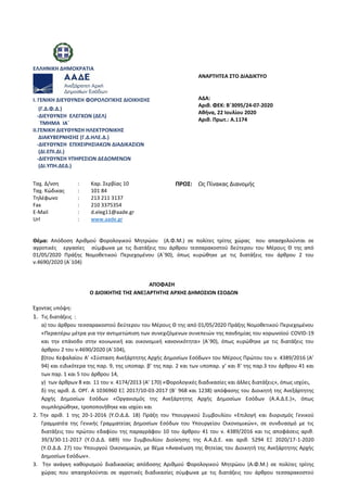 Α. 1174 /22-07-2020: Απόδοση Αριθμού Φορολογικού Μητρώου (Α.Φ.Μ.) σε πολίτες τρίτης χώρας που απασχολούνται σε αγροτικές εργασίες σύμφωνα με τις διατάξεις του άρθρου τεσσαρακοστού δεύτερου του Μέρους Θ της από 01.05.2020 Πράξης Νομοθετικού Περιεχομένου (Α΄ 90), όπως κυρώθηκε με τις διατάξεις του άρθρου 2 του ν. 4690/2020 (Α΄104)