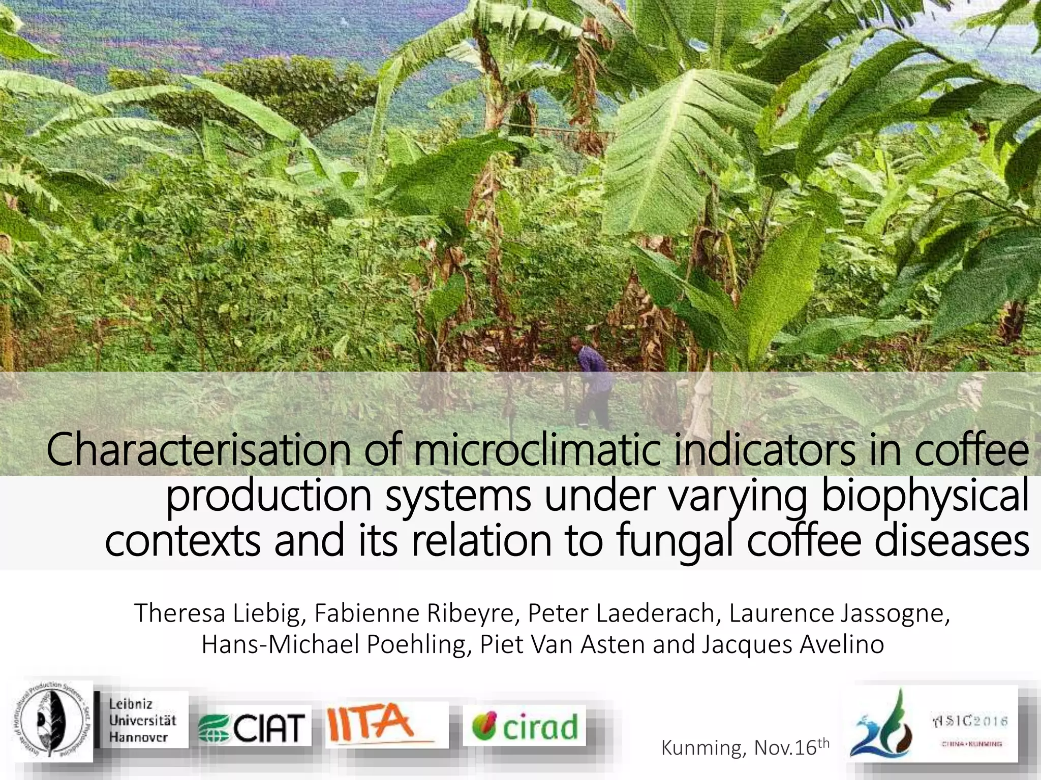 The document discusses the complex interactions between microclimatic indicators and fungal diseases in coffee production systems across varying altitudes. It highlights research findings from 49 sample plots, indicating that environmental factors and coffee production systems significantly affect both microclimate and coffee leaf rust (clr) patterns. The study concludes that structural equation modeling can effectively delineate the causal relationships within these agroecosystems.