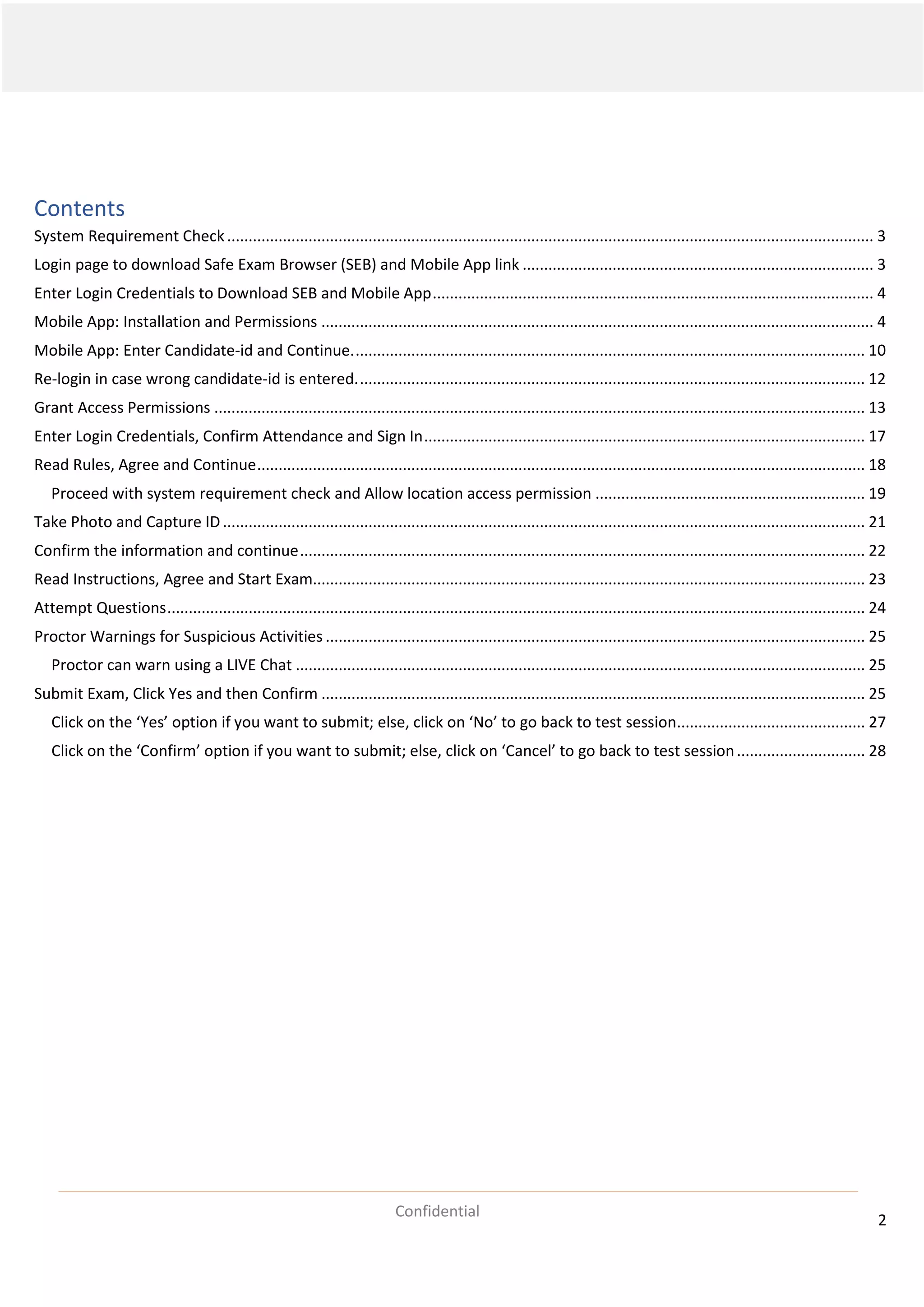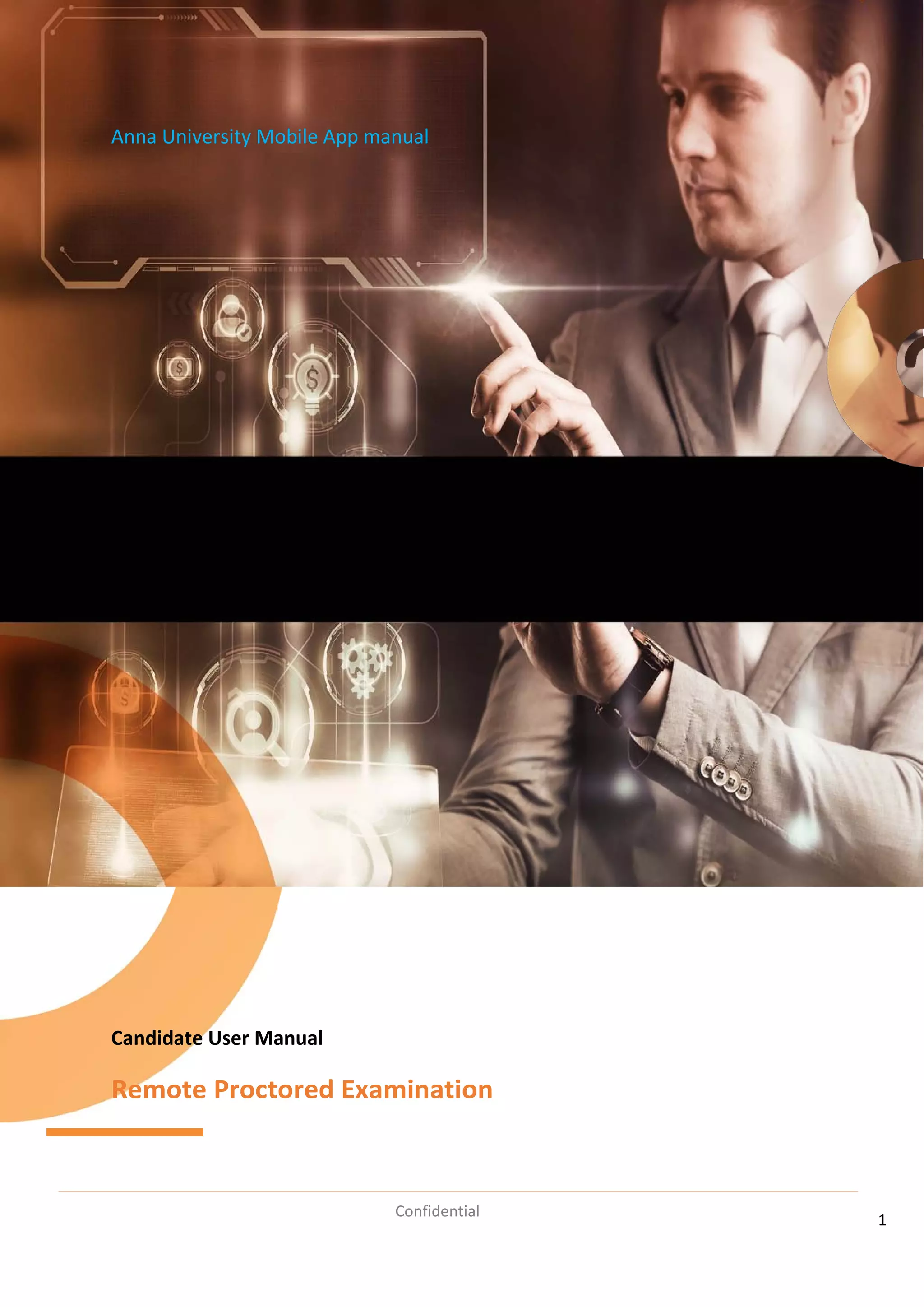 1. The document provides step-by-step instructions for taking a remote proctored exam using the Anna University Mobile App. It details the process for downloading and installing the app, logging in, granting permissions, taking a photo for ID verification, reading instructions, attempting questions, interacting with proctors, and submitting the exam.