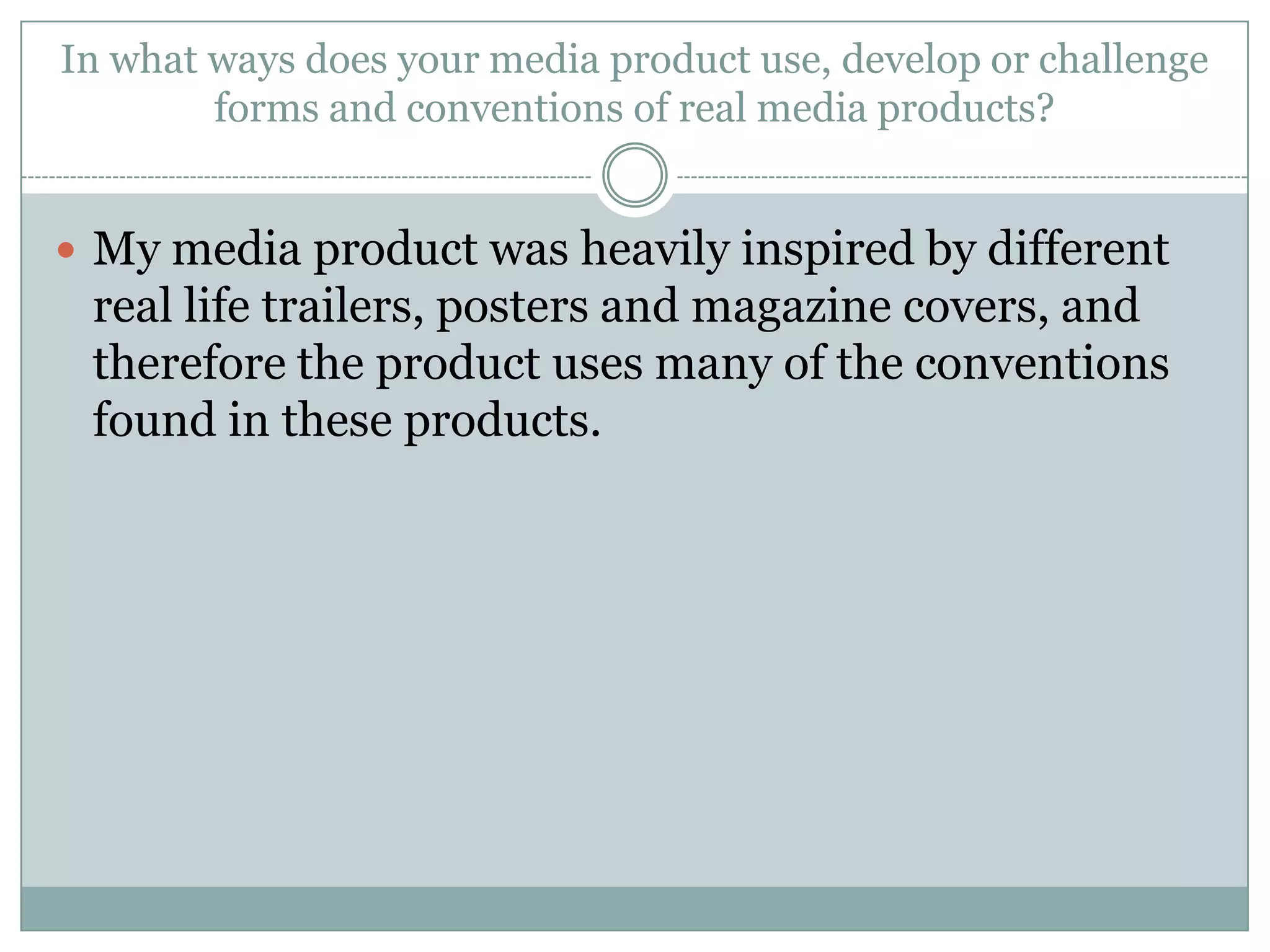 This document summarizes a student's media coursework project creating a promotional package for a fictional horror film. The package includes a magazine cover, film poster, and trailer. The student aimed to use conventions from real media products while also innovating in some ways. Feedback was positive and praised the creepy tone, continuity across items, and clear genre. However, some felt it revealed too much about the killer. The student learned new technologies like Photoshop, Premiere Pro, and professional cameras during the project.
