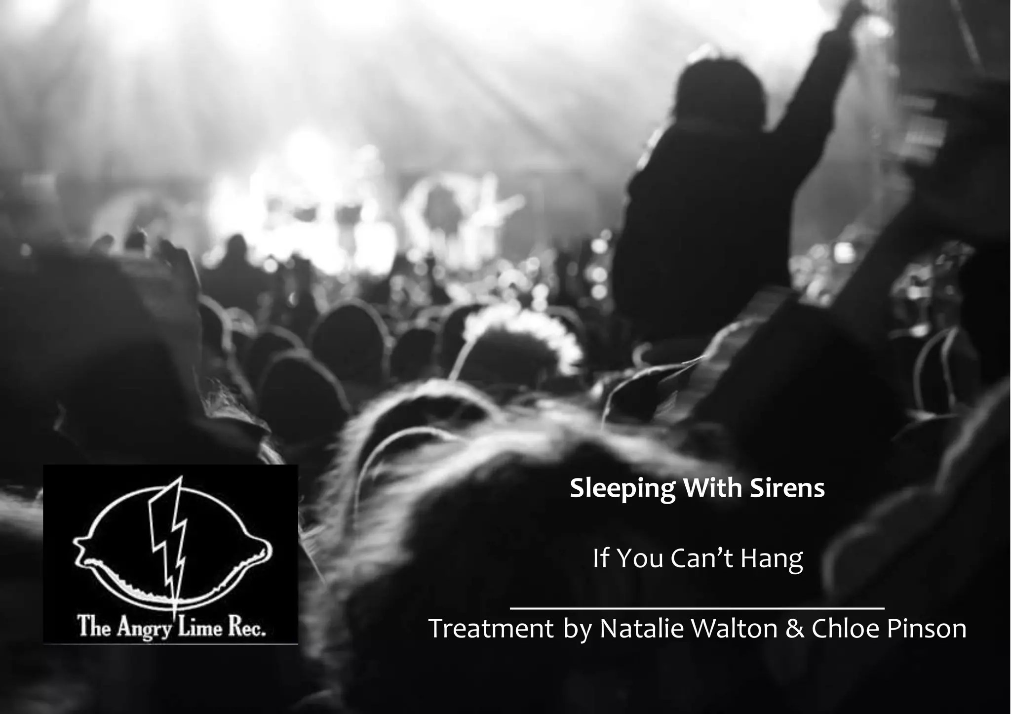 The document discusses treatment ideas for a music video for the song "If You Can't Hang" by Sleeping With Sirens. It will include both a performance element, showing the band performing live, as well as a narrative element to further explore the emotions and meaning of the song lyrics. Camera shots and lighting will be used to emphasize both the performance and narrative. The style and costumes will match the pop punk genre, and locations being considered include a live stage, beach, forest, theater, and house.