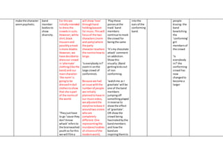 - Cast includes the band members, a main character, and a crowd that changes from conformists to nonconformists.