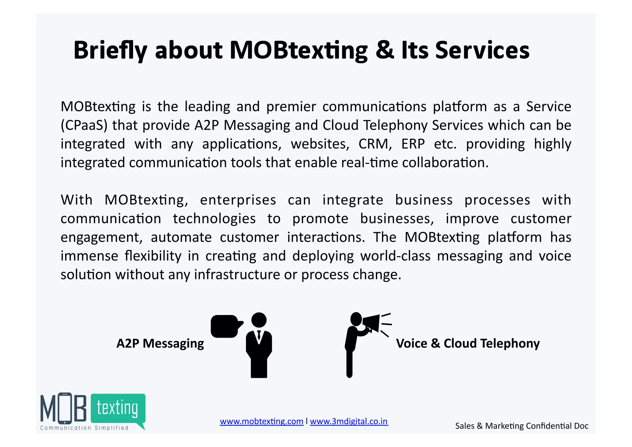 Mobtex.ng is a leading communications platform that offers A2P messaging and cloud telephony services, enabling enterprises to enhance customer engagement and automate interactions. Their services include SMS integrations for promotions, customer updates, and feedback collection, making it easier for businesses to communicate effectively with customers. The platform also supports cloud telephony, IVR, and various telecommunication solutions tailored for different industries.