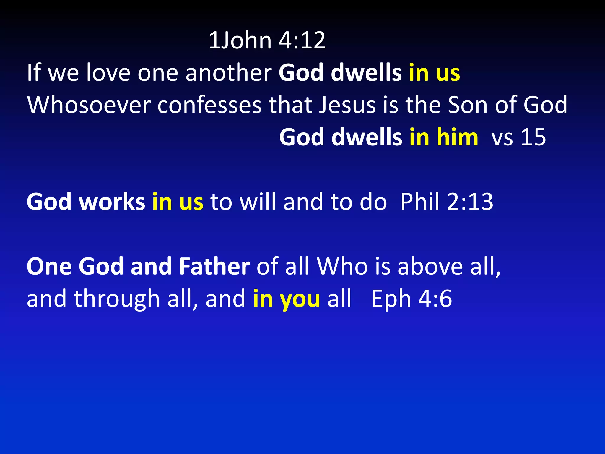 1. The document discusses how God dwells within believers through His Spirit and Jesus Christ. It provides many Bible verses showing that the Spirit of God and Christ live in Christians.