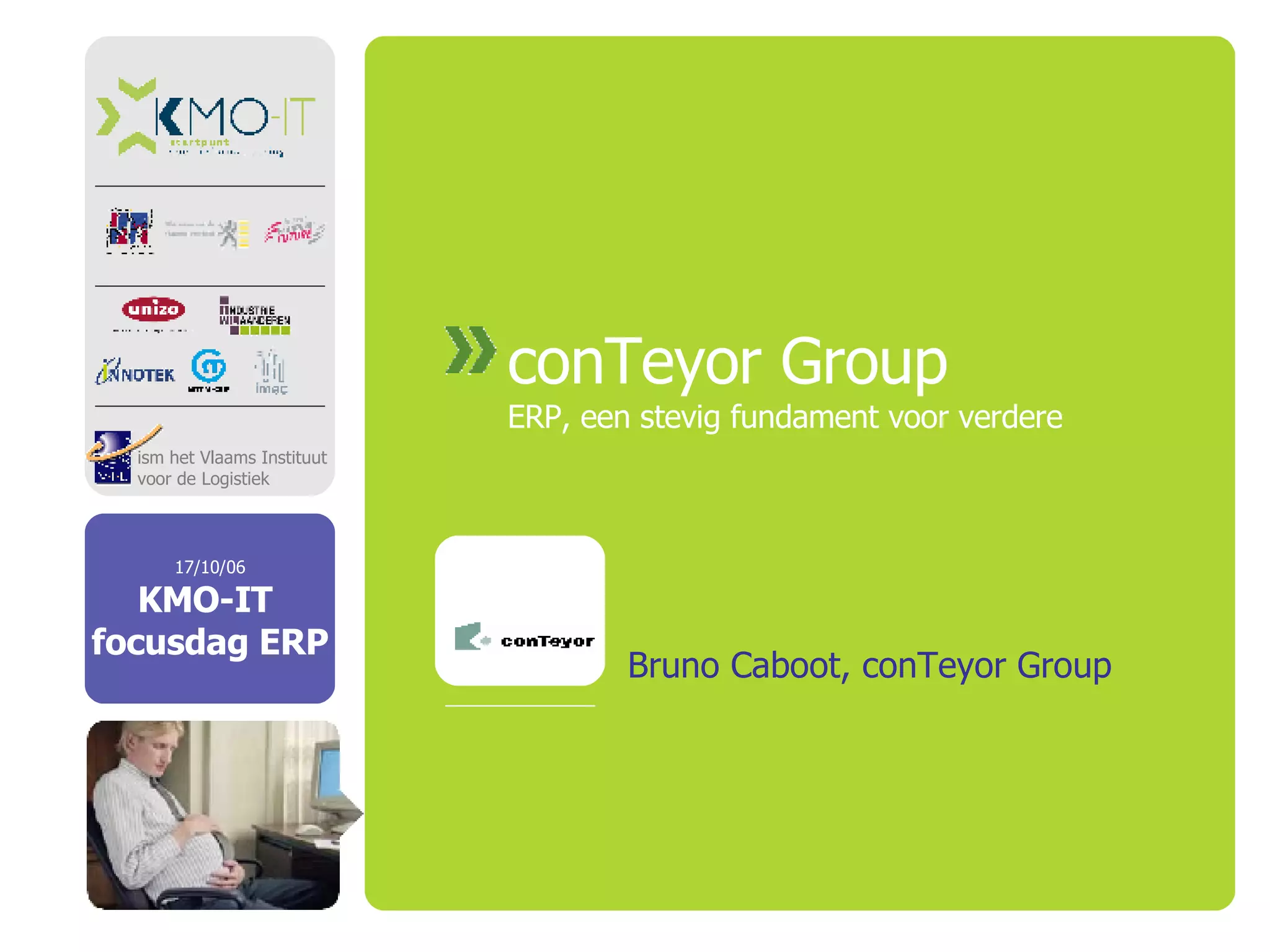 Welk ERP-systeem? Adviesonafhankelijke consultant Verschillende pakketten onder de loep Een pakket met standaardoplossingen voor de problemen van conTeyor