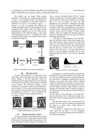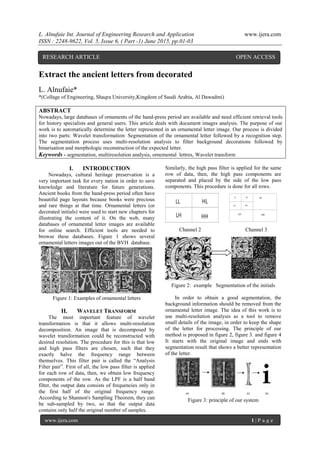 This article presents a method for analyzing ornamental letters in document images, utilizing wavelet transformation and segmentation techniques to enhance recognition. The process involves removing background details while preserving the letter's shape, followed by binarization to maintain letter pixels and eliminate decorative elements. The proposed method demonstrates efficacy in extracting and reconstructing letters from complex images, offering significant advancements in the analysis of historical printed materials.