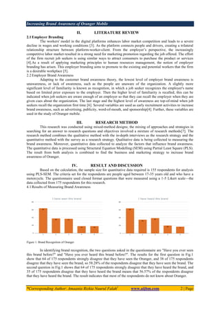 - The study uses a mixed-methods approach, collecting both qualitative data to measure brand awareness and quantitative data to analyze factors influencing awareness. The results show advertising, publicity, sponsorship, and word-of-mouth can increase Oranger's brand awareness.