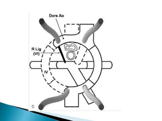 3. Arch anomalies can cause symptoms from airway or esophageal compression or be incidental findings on imaging. The most common types are double aortic arch, right aortic arch with aberrant left subclavian artery, and right aortic arch with retroesophageal diverticulum of Kommerell.