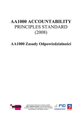 Przedstawiona tu norma AA1000 Zasady Odpowiedzialności [ AA1000APS (2008]), jest