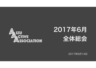 Aizu Active Associationが2017年6月に会津大学にて開催した「梅雨の総会」で発表したプレゼン資料です。 ・Aizu Active Associationの近況について ・サロンプロジェクト ・田んぼプロジェクト ・ピアカウンセリングプロジェクト