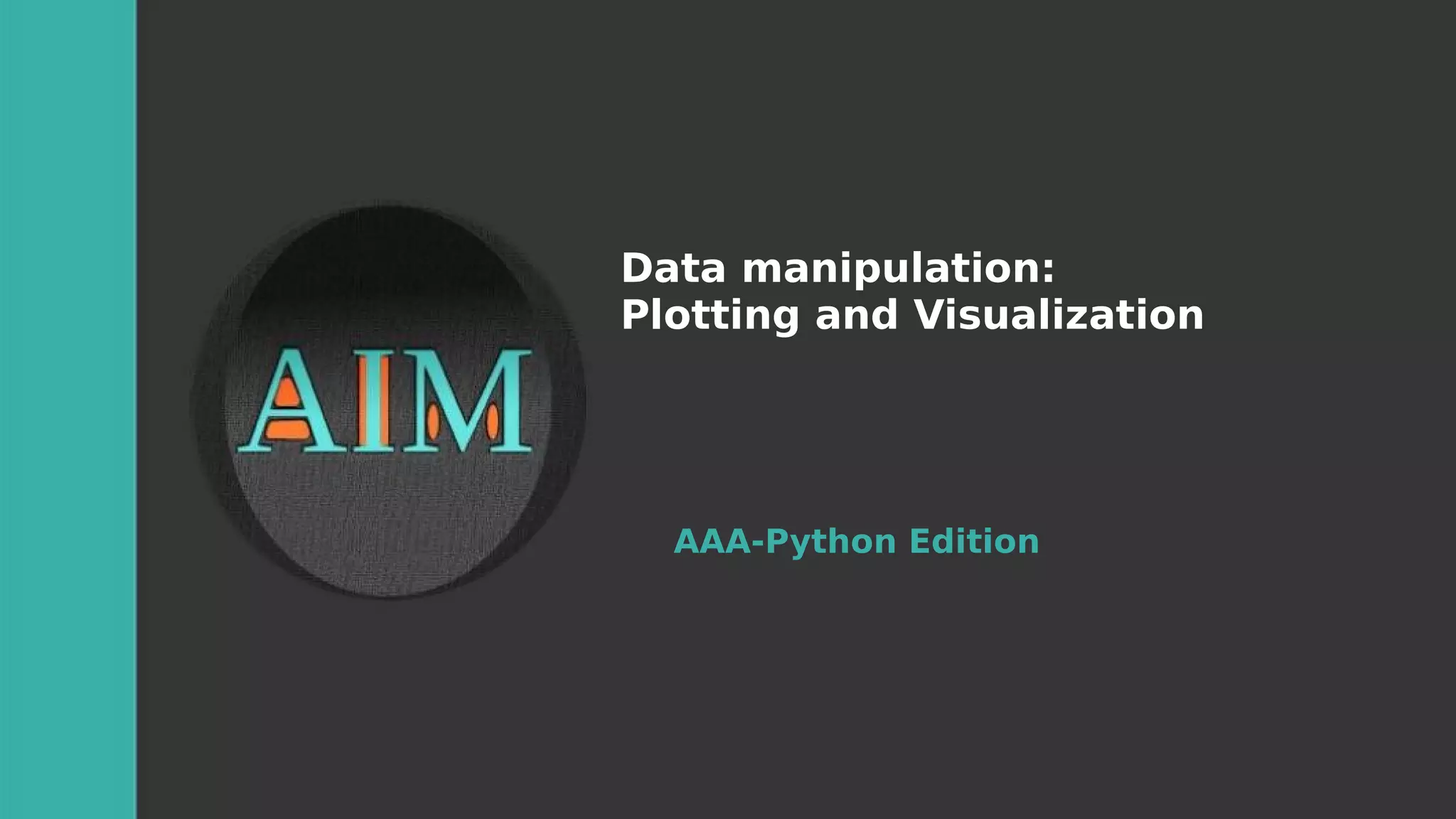 The document outlines a plan for data manipulation, focusing on plotting and visualization using libraries like Matplotlib, Pandas, Seaborn, and Bokeh. It covers basic and customized plotting techniques, annotations, file handling, and the creation of various plots such as line, bar, and scatter plots. Additionally, it mentions interactive graphics with Plotly and provides references for further reading.